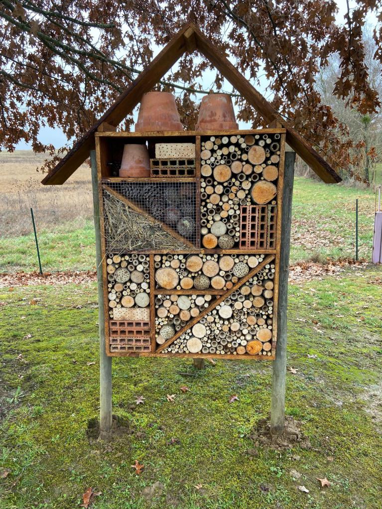 Confectionné par notre employé communal, cet hôtel à insectes qui a été posé à côté du parking de la salle des fêtes, s'inscrit dans une démarche de sensibilisation à la conservation de la biodiversité.